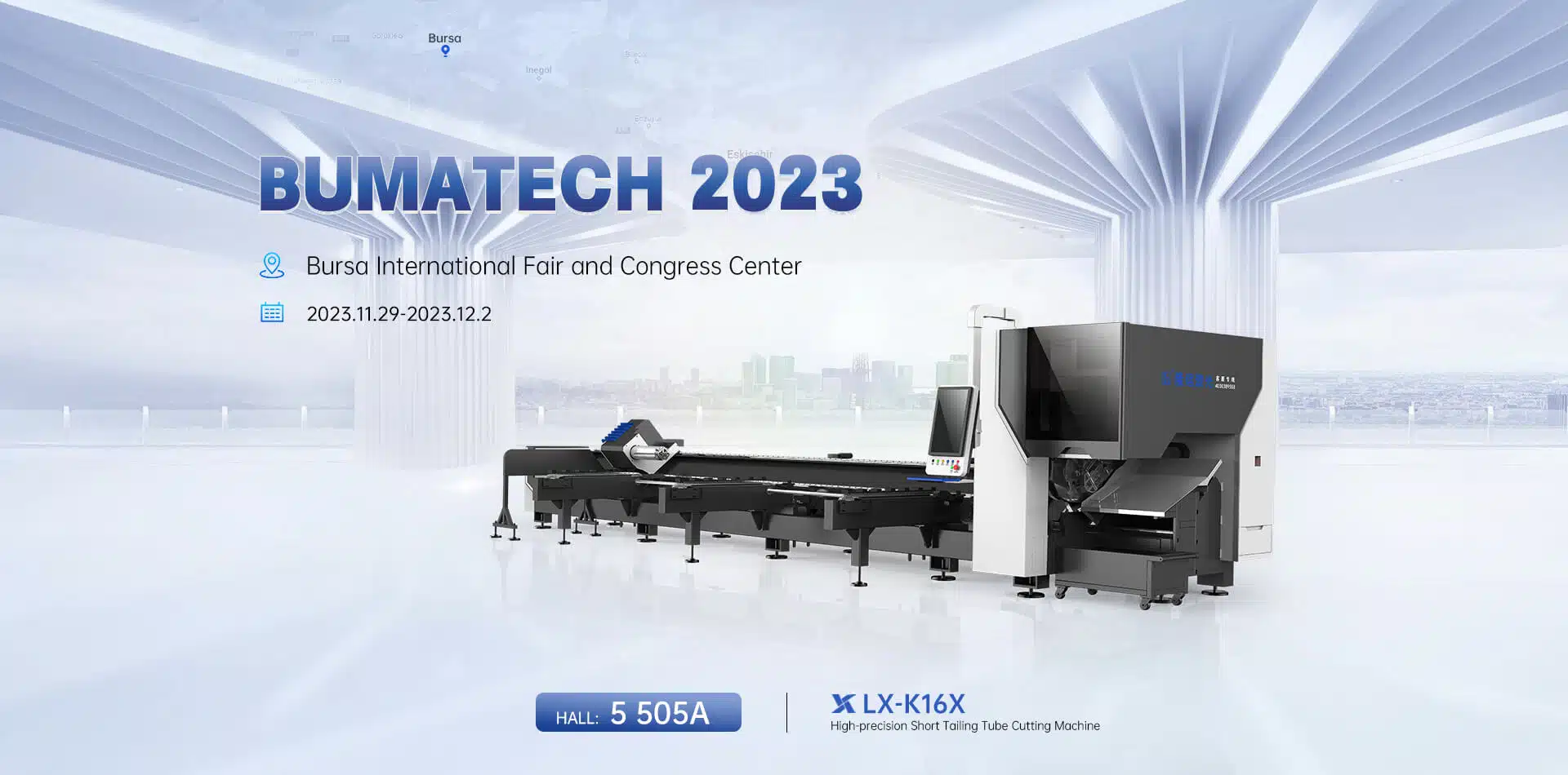 Компания Longxin laser сердечно приглашает Вас принять участие в выставке Bursa Machine Technologies Fairs (BUMATECH). Мероприятие будет проходить в Международном выставочном и конгресс-центре Бурсы в городе Бурса, Турция, с 2023.11.29 по 2023.12.2.